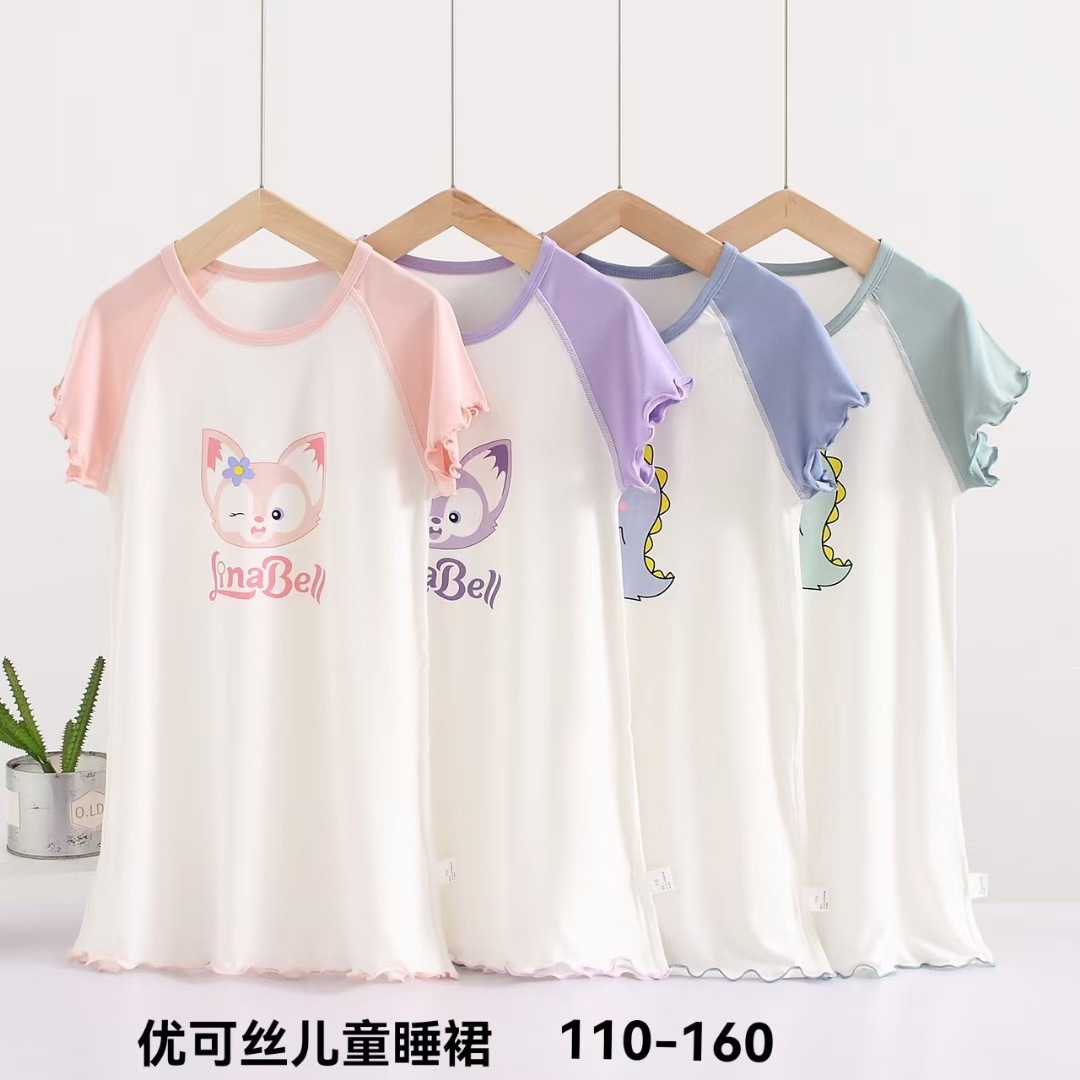 夏の女の子のパジャマスカートの女の子の起爆金の優可糸の家のスカートの柔らかいモチとした糸の滑りの女性の赤ちゃんの家の服のatn3220