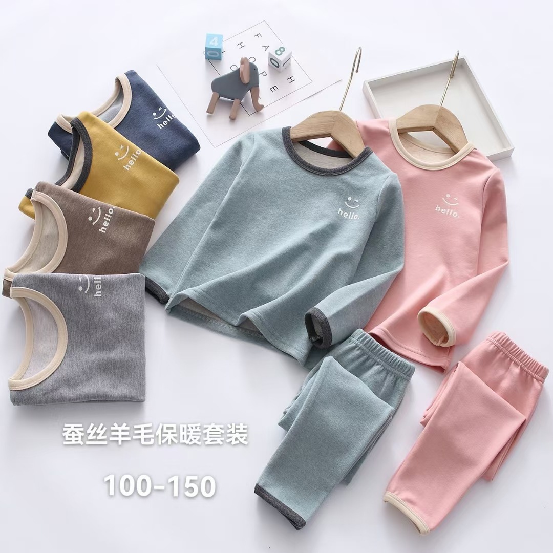 秋冬の新型子供用下着セット男女子供用シルクウール長袖保温セットatn8240