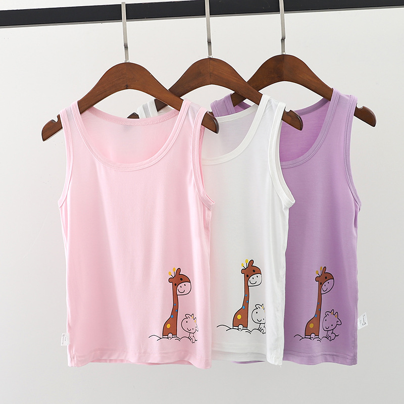 2023夏の新しい女の子のベストの女の子の漫画の鹿のプリントのモーダルの綿のベストのストラップのdlz3150