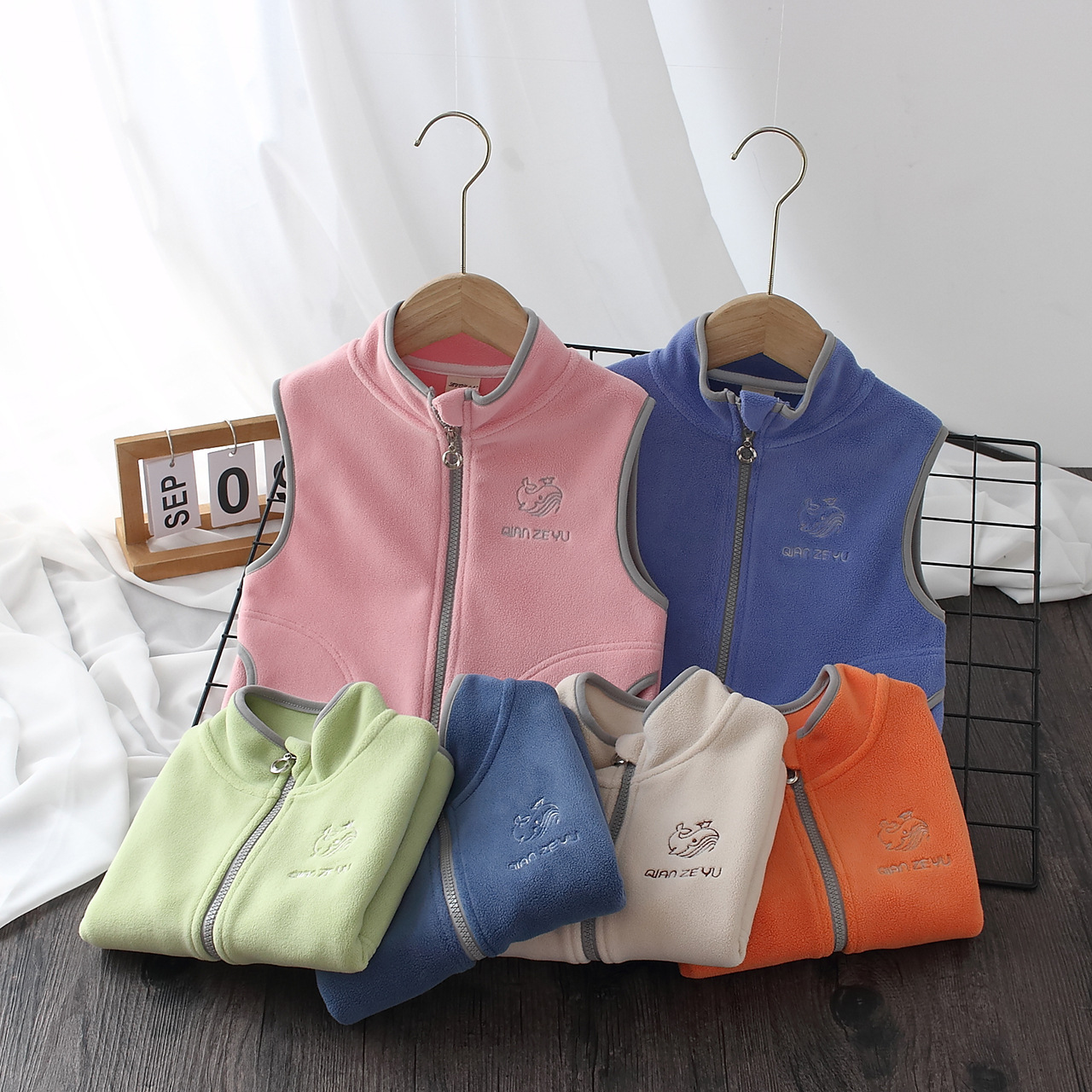 秋冬の新型子供の奥粒の毛の立襟の馬の甲の男の子の女の子の中小の潮の子供のカーディガンのベストlq10215