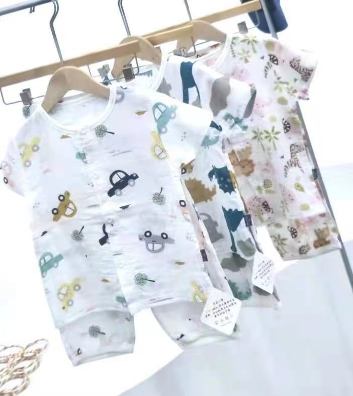 夏の新しい子供の綿糸の家の服のスーツの赤ちゃんの半袖の9分のズボンのスーツのパジャマの2つのセットのtz913