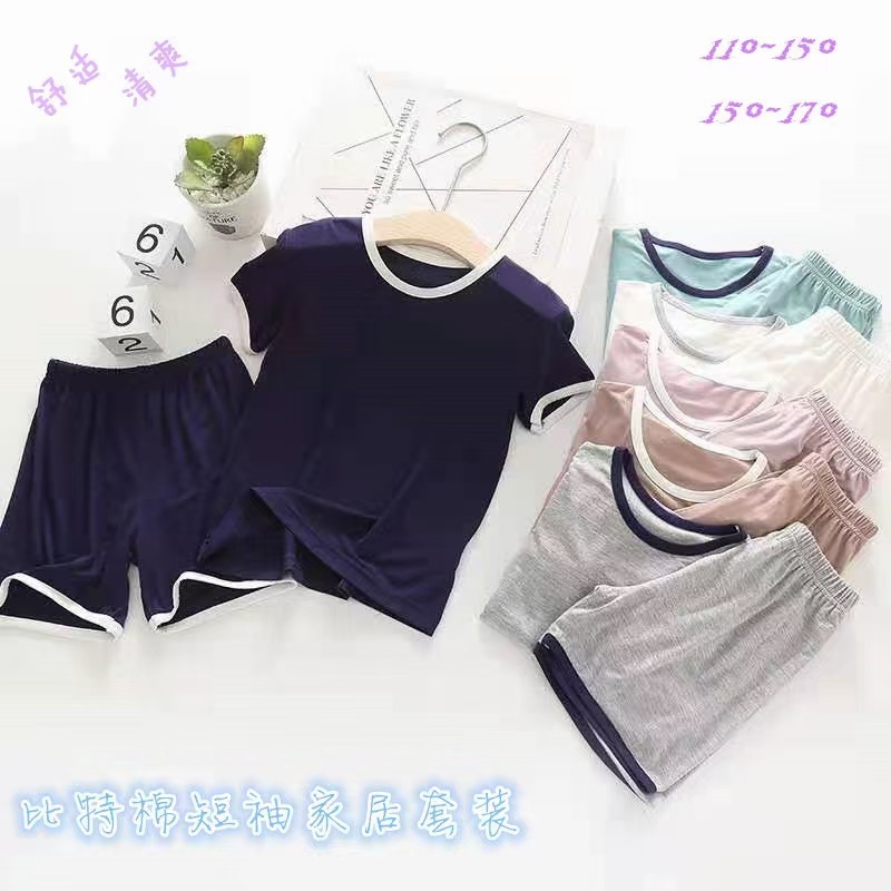 子供用中袖ホームウェア男女大童半袖パジャマ2点セット韓国版ビット綿セットat