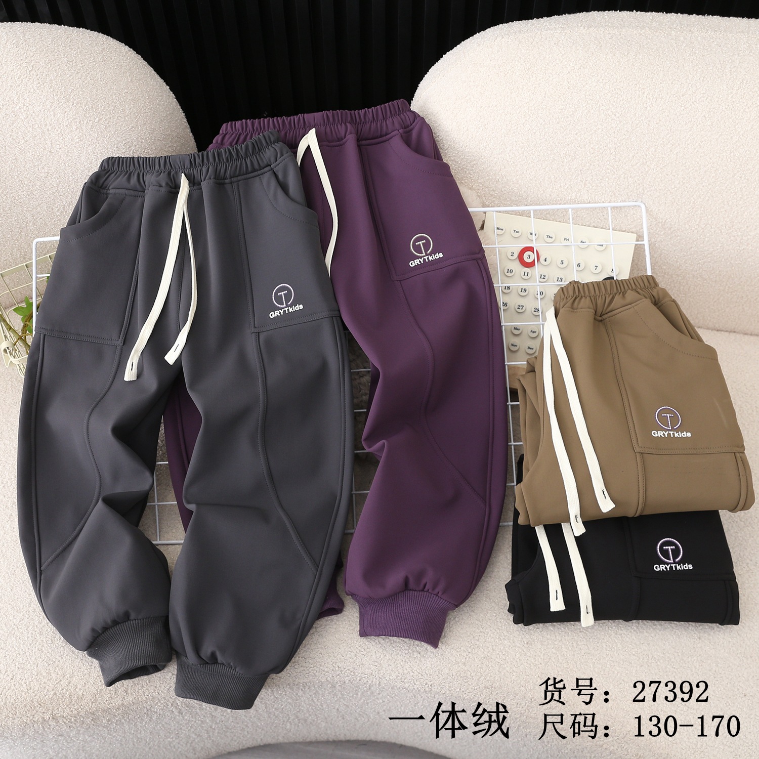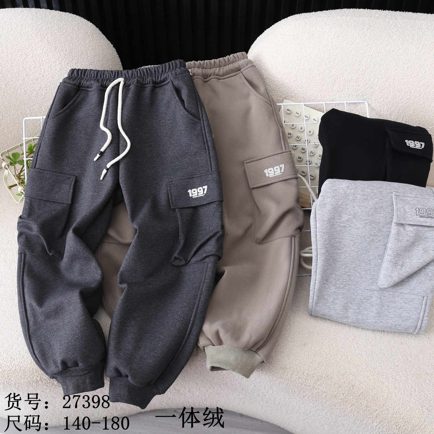子供用ベルベット工装ズボン冬型男女童華綿複合奥粒パイル厚さ衛ズボンスポーツパンツzl27397