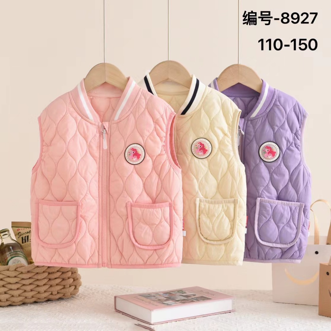 冬の子供の綿のベストの男の子の漫画のvネックの薄い綿の馬は男の子のファスナーのベストの制服の神器のhb 8929を挟みます。