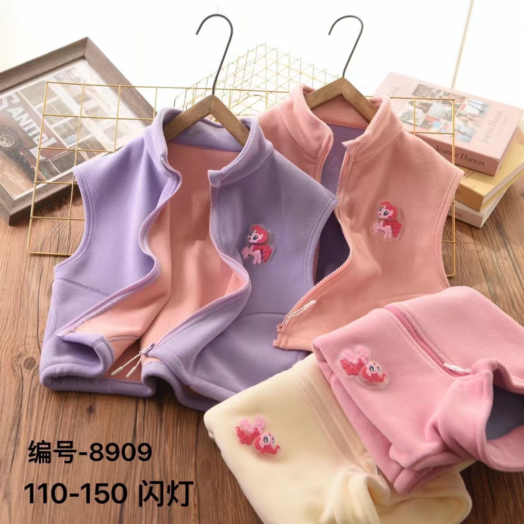 冬の子供のカシミヤの馬甲の韓国版の女の子の漫画の奥の粒の絨毯の複合の米の粒の絨毯の厚い立襟の馬甲のhb 89