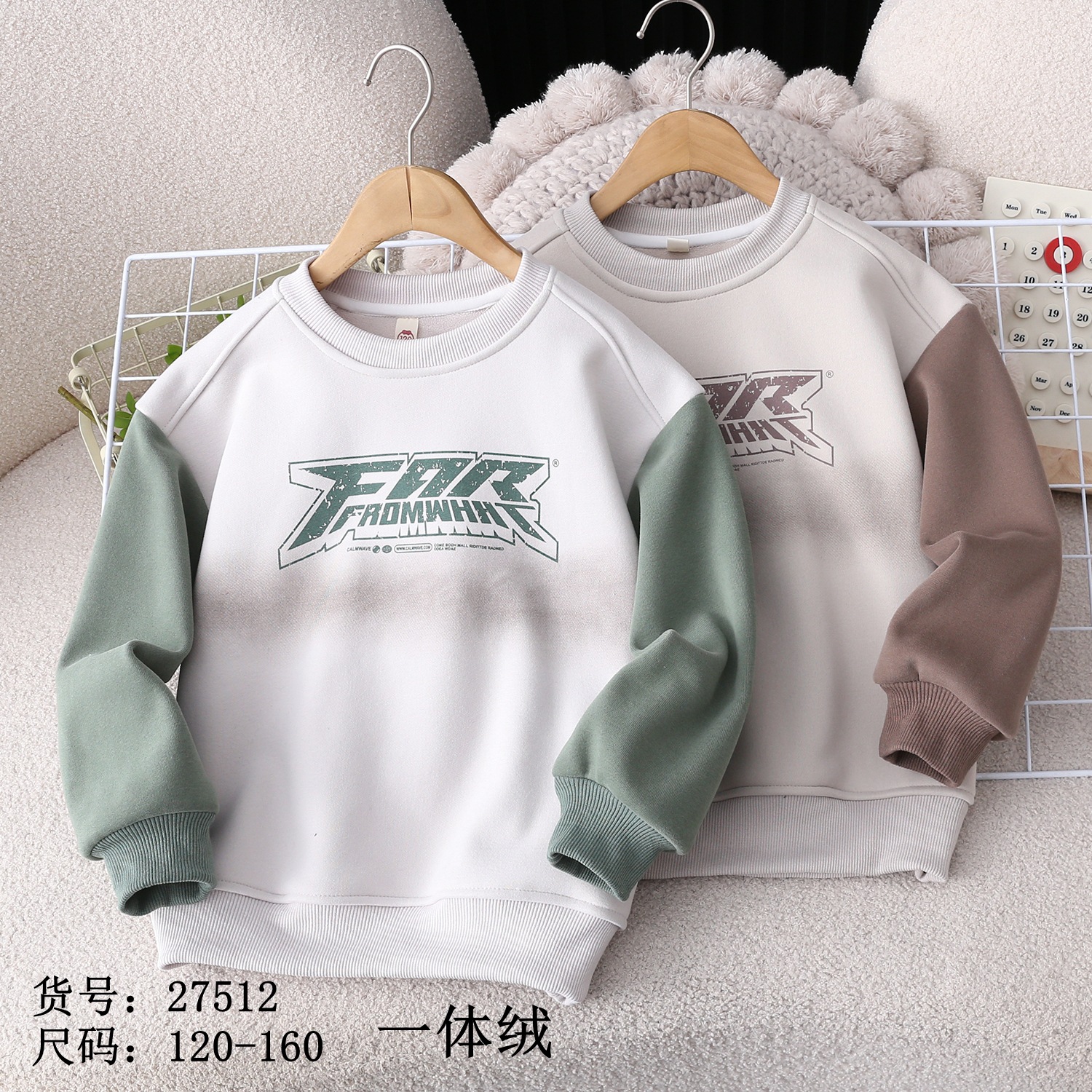 冬のタイプの男の子の一体の絨毯は厚い衛衣の韓国版の偽の2つの男の子の奥の粒の絨毯の襟のプルオーバーのz 27515を厚くします。