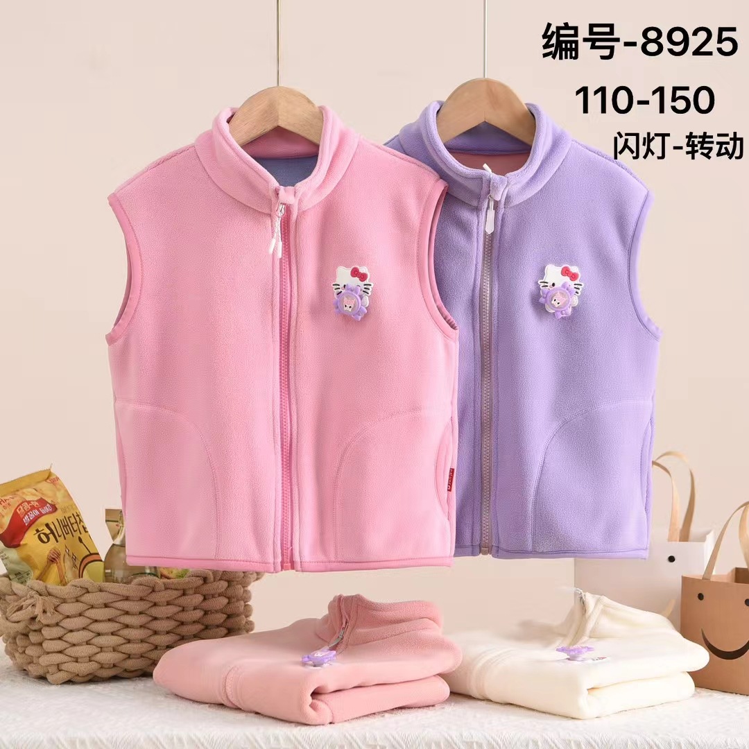 子供の秋冬のモデルの奥の粒の絨毯の馬甲の女の子の克洛米の漫画のフラッシュライトの立襟の馬甲のファスナーのベストのhb 9088
