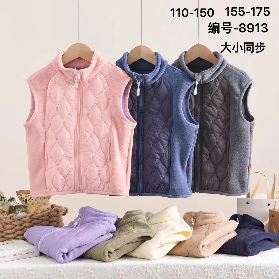 子供の大版は馬甲の冬のタイプの奥の粒の絨毯を厚くして薄い綿の立襟の馬甲の中で大きい子供のファスナーのベストのhb 8913をつづり合わせます。