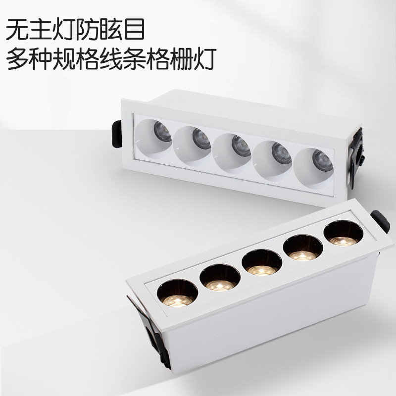 主灯なしリビング照明LED埋め込み式ラインライト防眩しさ極簡コブ天井灯長方形グリルスポットライト