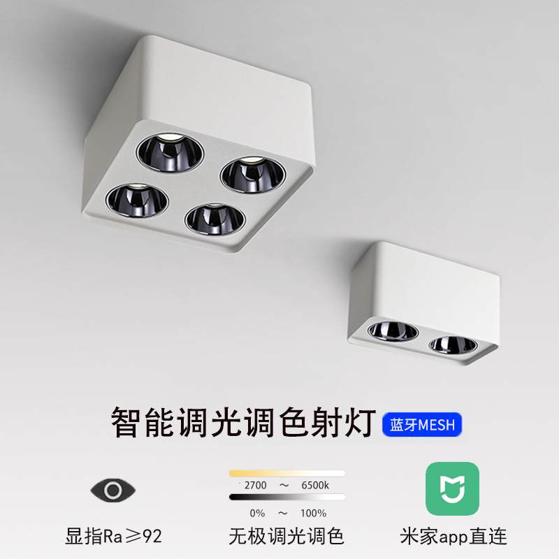 スマート照明灯防眩光客間米家角型ダウンライト箱灯は、シングルツイン4頭の闘胆灯を吸う