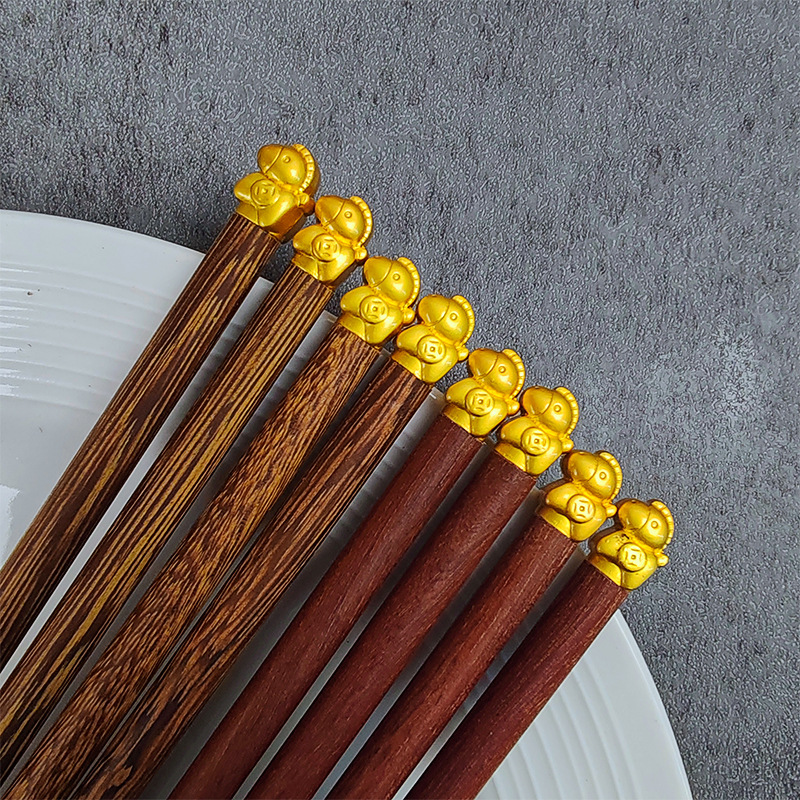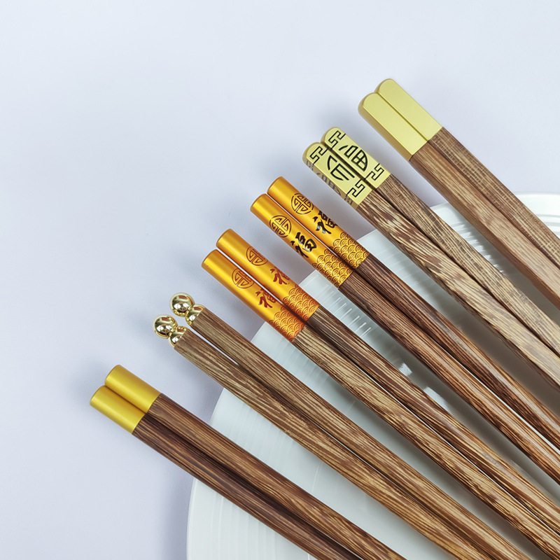 手羽木福字角頭福中国式紅木箸霧金家庭用金属頭箸セットメーカー卸売り