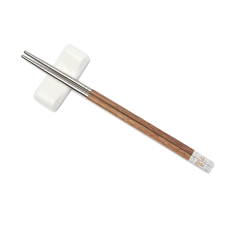 304 ステンレス鋼無垢材箸シングルとダブル高価値マホガニー屋外高温耐性食器手羽先木製ギフト卸売