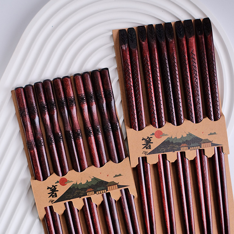 木製箸 ブナ材 鶏羽材 夜市箸 10膳入りボックス 家庭用 紫檀箸 食器セット ギフトボックス 環境に優しい箸
