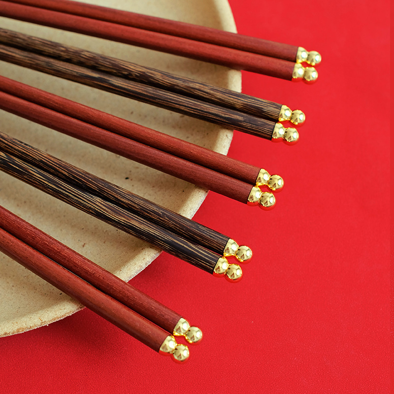 国風ドラゴンボール手羽木箸家庭用食器ひょうたん箸金属頭紅檀木プレゼント箸卸売り