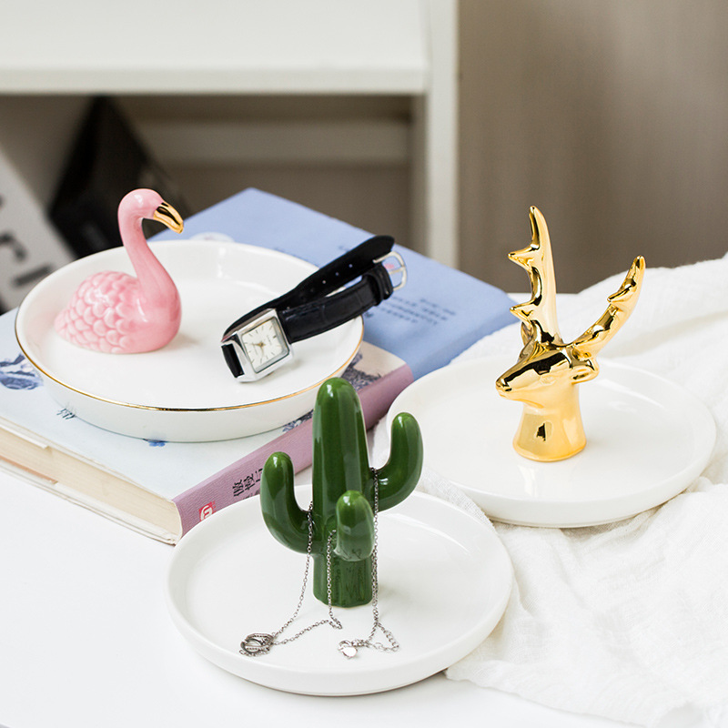 フラミンゴアクセサリー棚風呂置物指輪トレー北欧サボテン鹿陶磁器化粧台収納皿