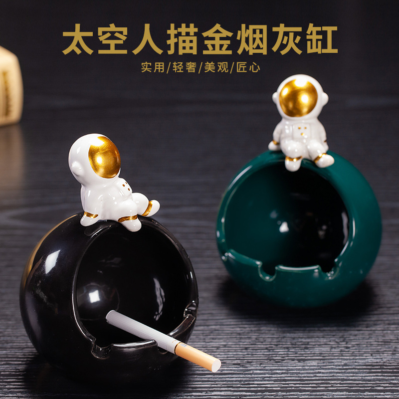 宇宙飛行士灰皿創意個性玄関防飛灰家庭用リビングルーム装飾陶磁器アニメ北欧宇宙人