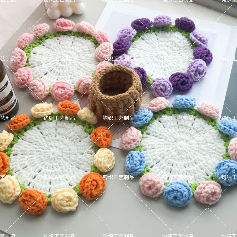 新しい純粋な手作りのクリエイティブニット断熱コースターローズフラワーシンプルなニットコースター素材パッケージ完成品卸売