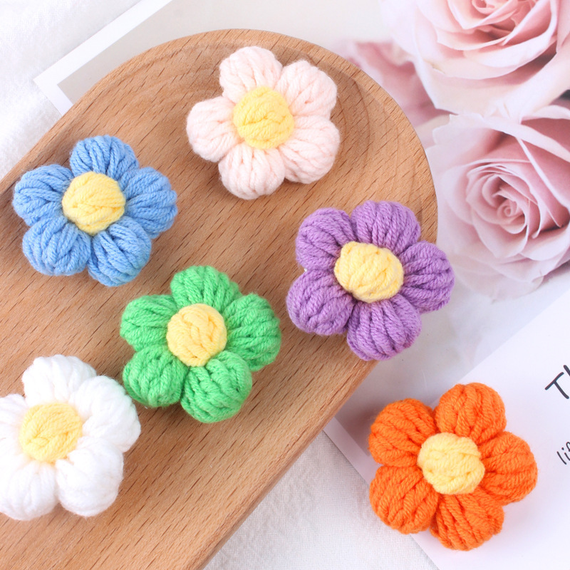 ネットの赤いコースターの甘い風の花の切れの服のアクセサリの純粋な手作りの毛糸のフックは多彩な花のブローチを編みます。