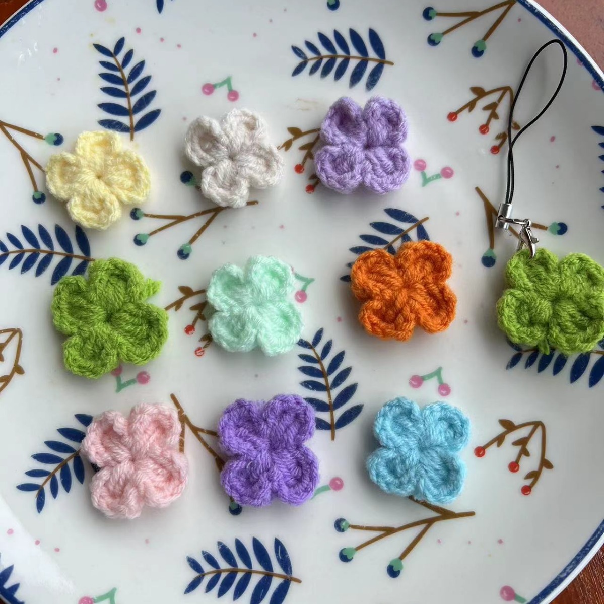 完成品四葉草携帯ストラップのキーホルダーが可愛い創意毛糸バッグアクセサリー子供趣味卸売り