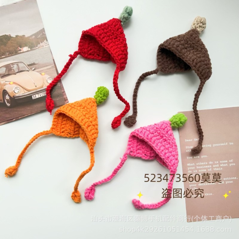 日本のかわいいミニ萌えストラップ手作り編み毛糸の頭カバーアニメDIY人形装飾部品