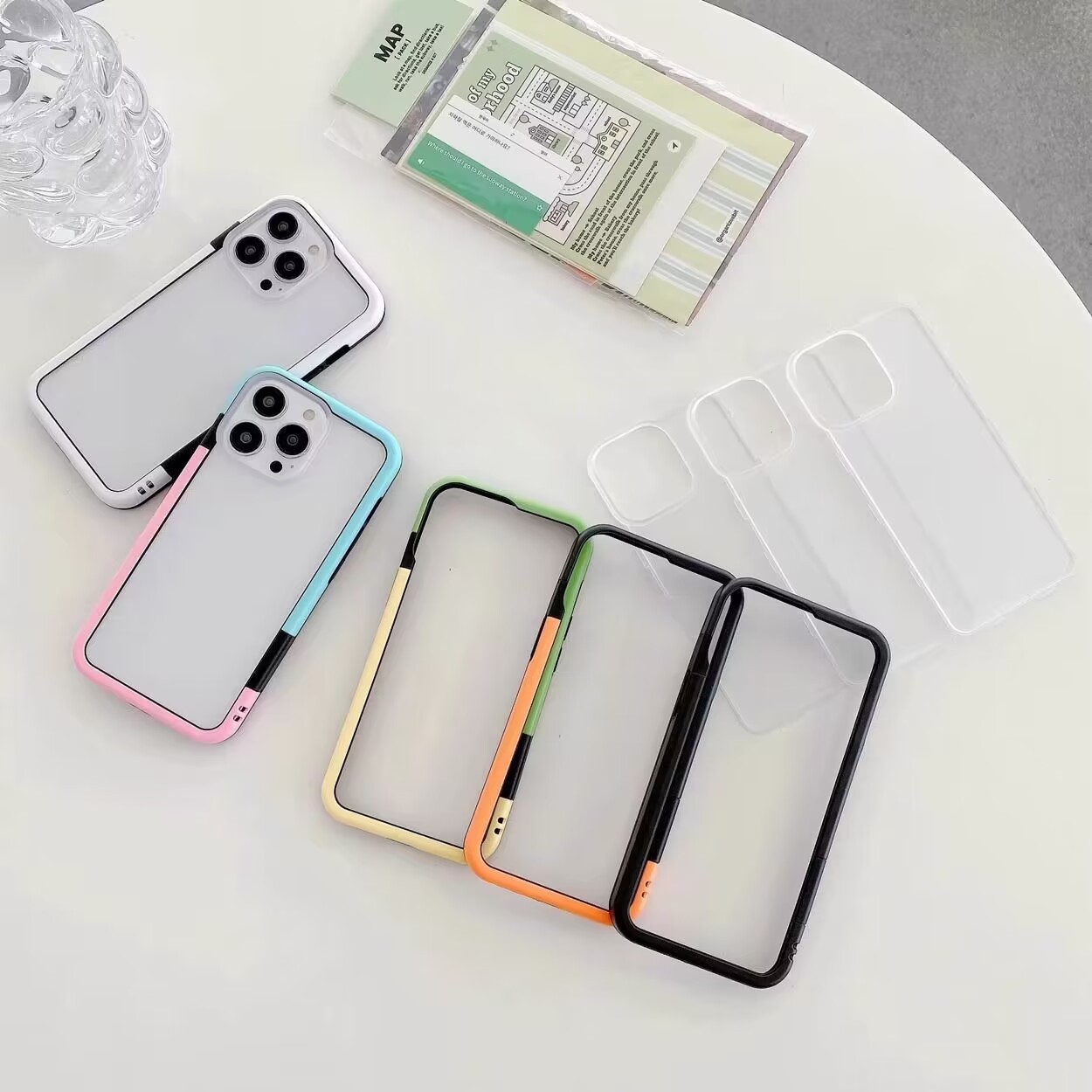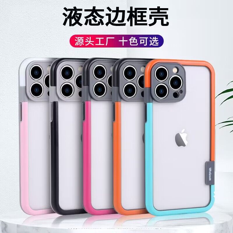 INS 2色フレーム透明携帯ケースはリンゴ15/14pro研磨ケースiPhone13/12小衆ケースを適用する