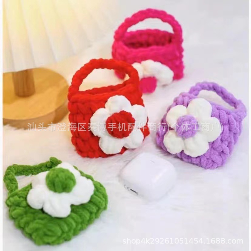 完成品アニメ毛糸編みイヤホンバッグ手編みニット毛糸イヤホンカバーミニ小銭収納バッグ