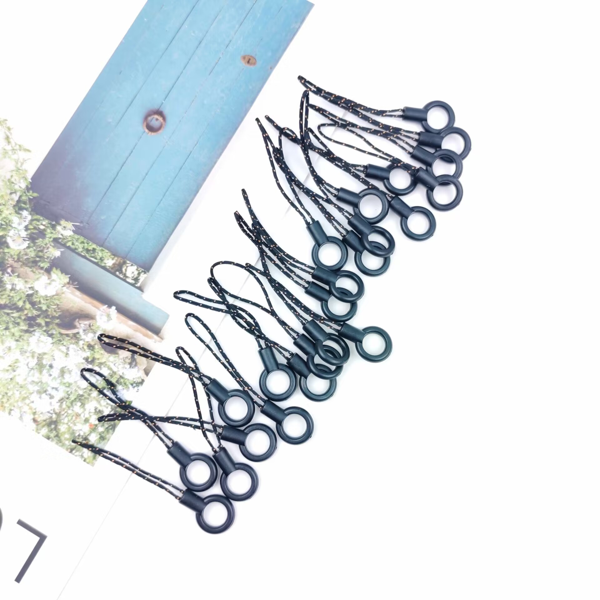 メーカー卸売DIY携帯電話のひもの部品は太くて小さい縄の頭の小さい黒い縄は携帯電話の携帯電話の部品のチェーンを掛けます。