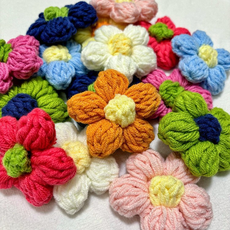 毛糸鉤織泡芙花7センチ花秋冬暖色系ツバキ花服装バッグ服装補助材料アクセサリー