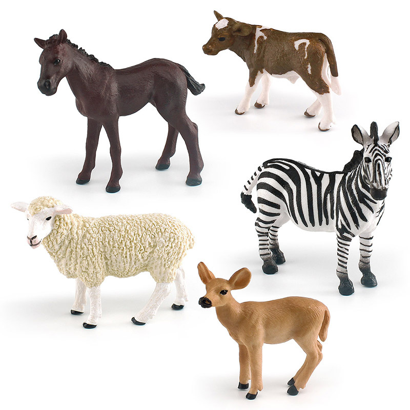 クロスボーダーシミュレーション白尾鹿小乳牛羊公シマウマアラブ馬駒動物模型静的置物玩具