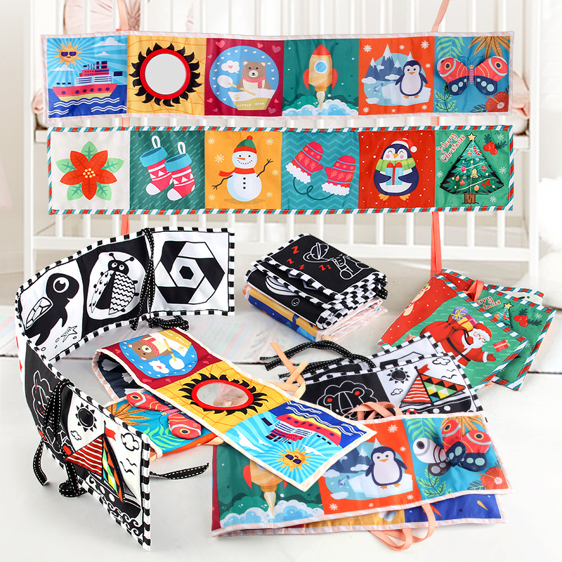 115シリーズ赤ちゃん早教両面カラーベッドストラップ認知形状動物赤ちゃん布本ベッド周りbb器