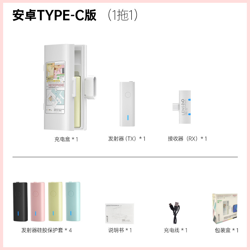 LENSGO朗詩歌518C無線マイククリップ式携帯電話専用一モップ二直播ノイズリダクション集音器