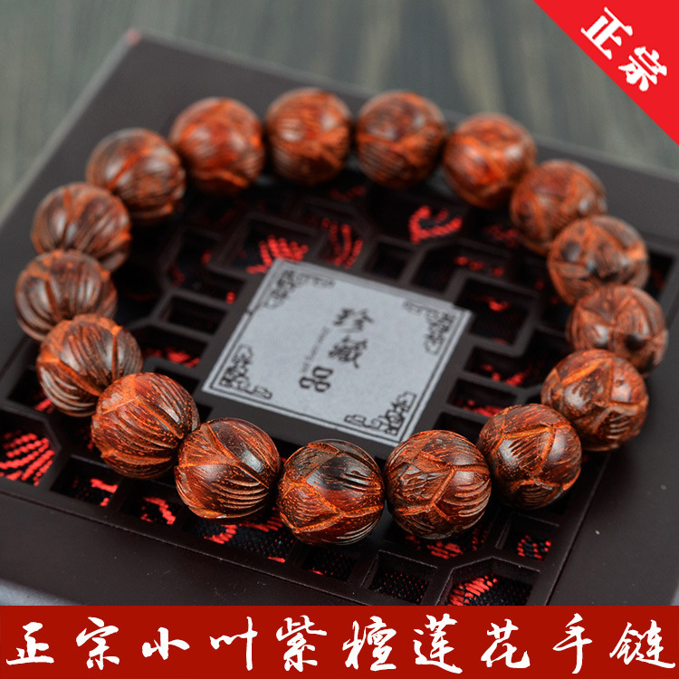 正規品小葉紫檀ブレスレット1.2cm彫刻蓮インド紫檀ブレスレット紫檀仏珠690608