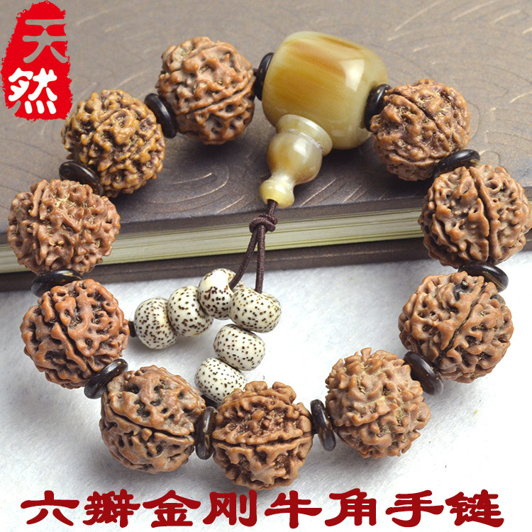 正統六弁金剛菩提ブレスレット金剛珠径1.8-1.9cm牛角仏頭菩提仏珠ブレスレット