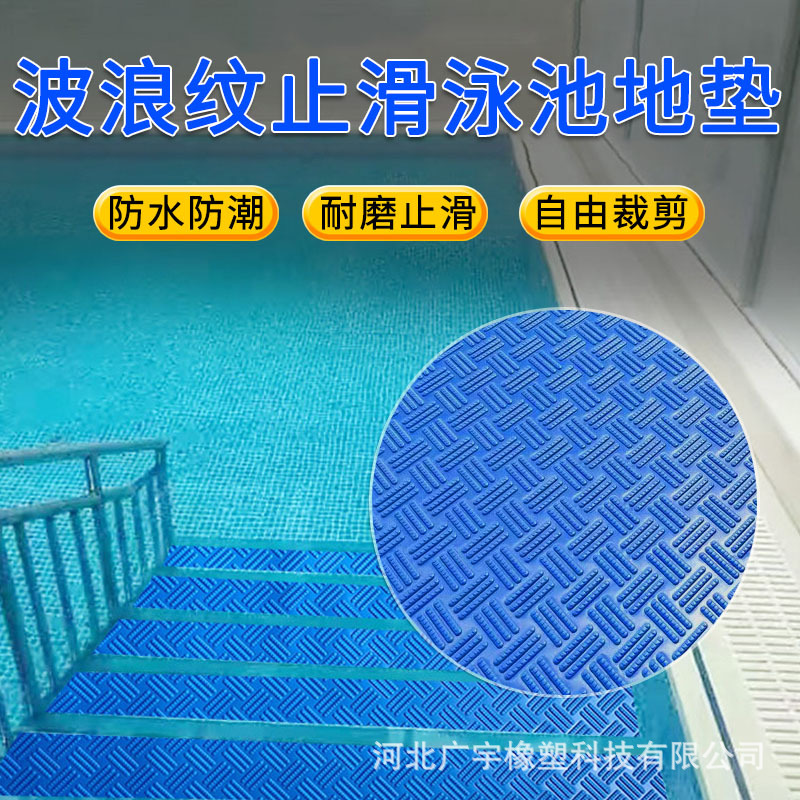 スポット防水滑り止めマットオックスフォード厚いプールのはしごマットPVC滑り止めプールマット青い水波紋マット