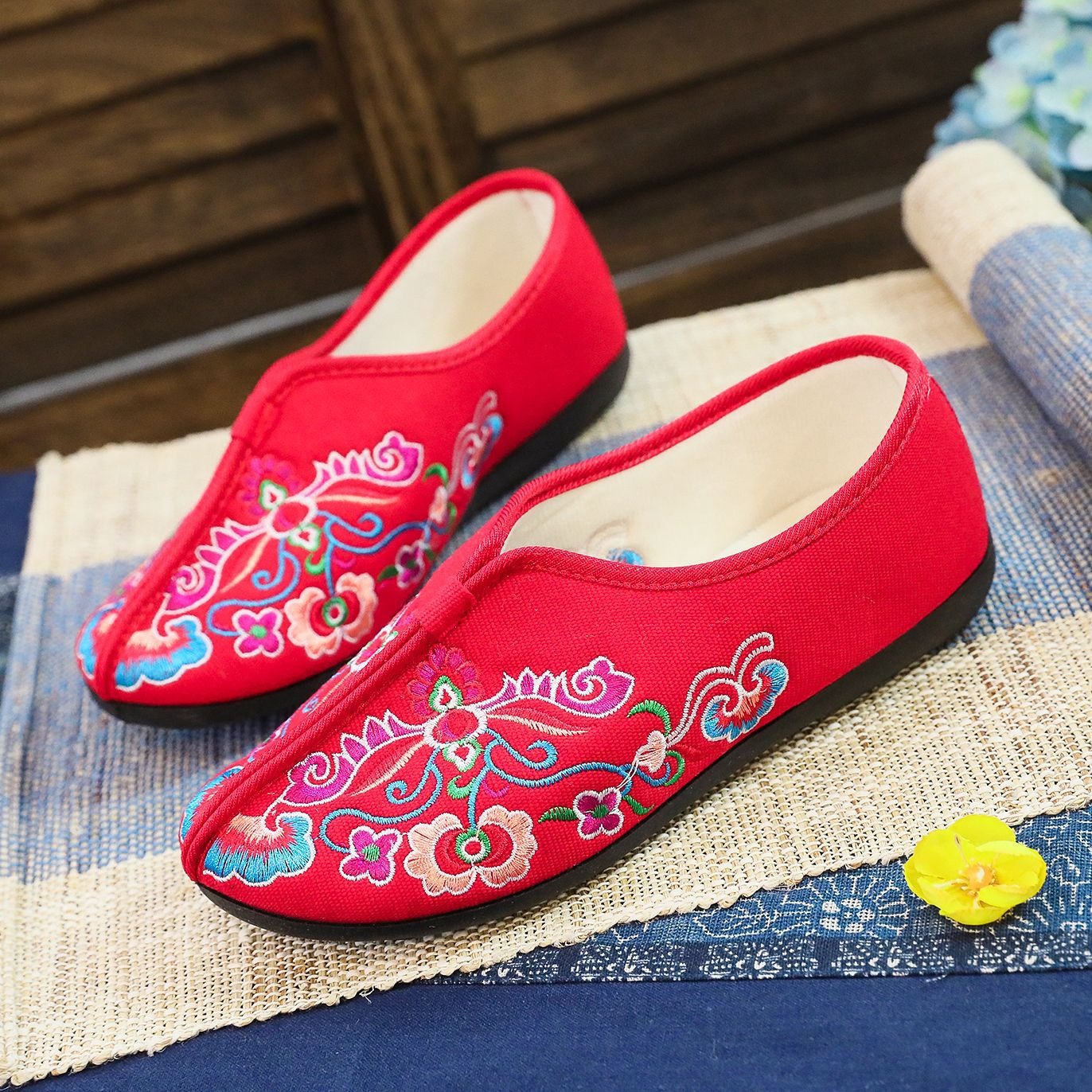 春と秋の刺繍の布の靴の丸い頭は女性の靴の単靴のお母さんの靴の結婚の靴を掛けます。