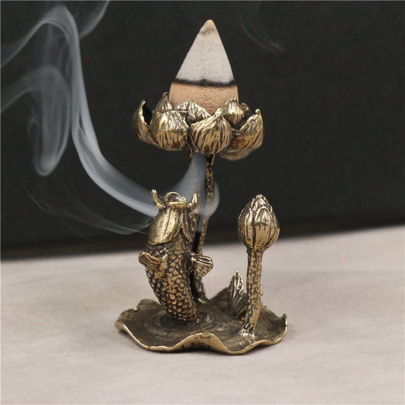 復古して古い純粋な真鍮の蓮の花の鯉が竜門に躍り出て池の境地の蓮の花を飾って香りの棚に戻ります。