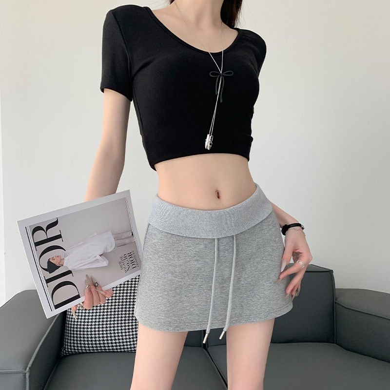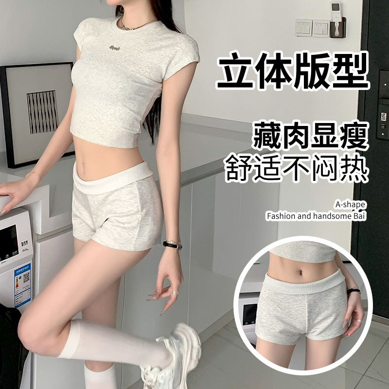 薄灰色の巾着スポーツバッグヒップスカート、裏地付きで露出防止、スリムで万能、脚長効果、夏用安全パンツ、ホットパンツ