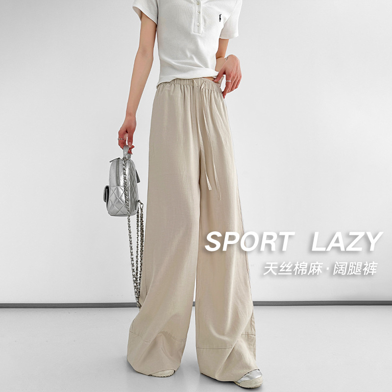 ひもの天糸綿麻の広脚ズボンの女性は裏地を持って新型の粗麻のしわに抵抗します。