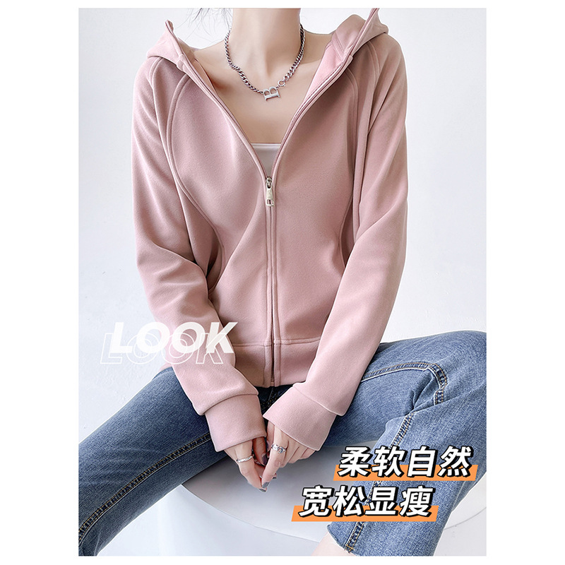 lulu2025春秋新作防風スウェットジャケット レディース フード付き 小柄さん向け 秋冬厚手カジュアルアウター