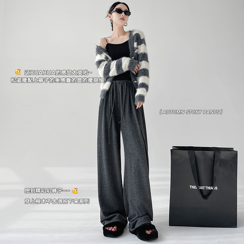 狭い版の広腿のズボンの女性の春秋の2024の新型はやせているカジュアルな灰色のゆったりしている怠惰な風のまっすぐな筒のもち米のズボンを現します。