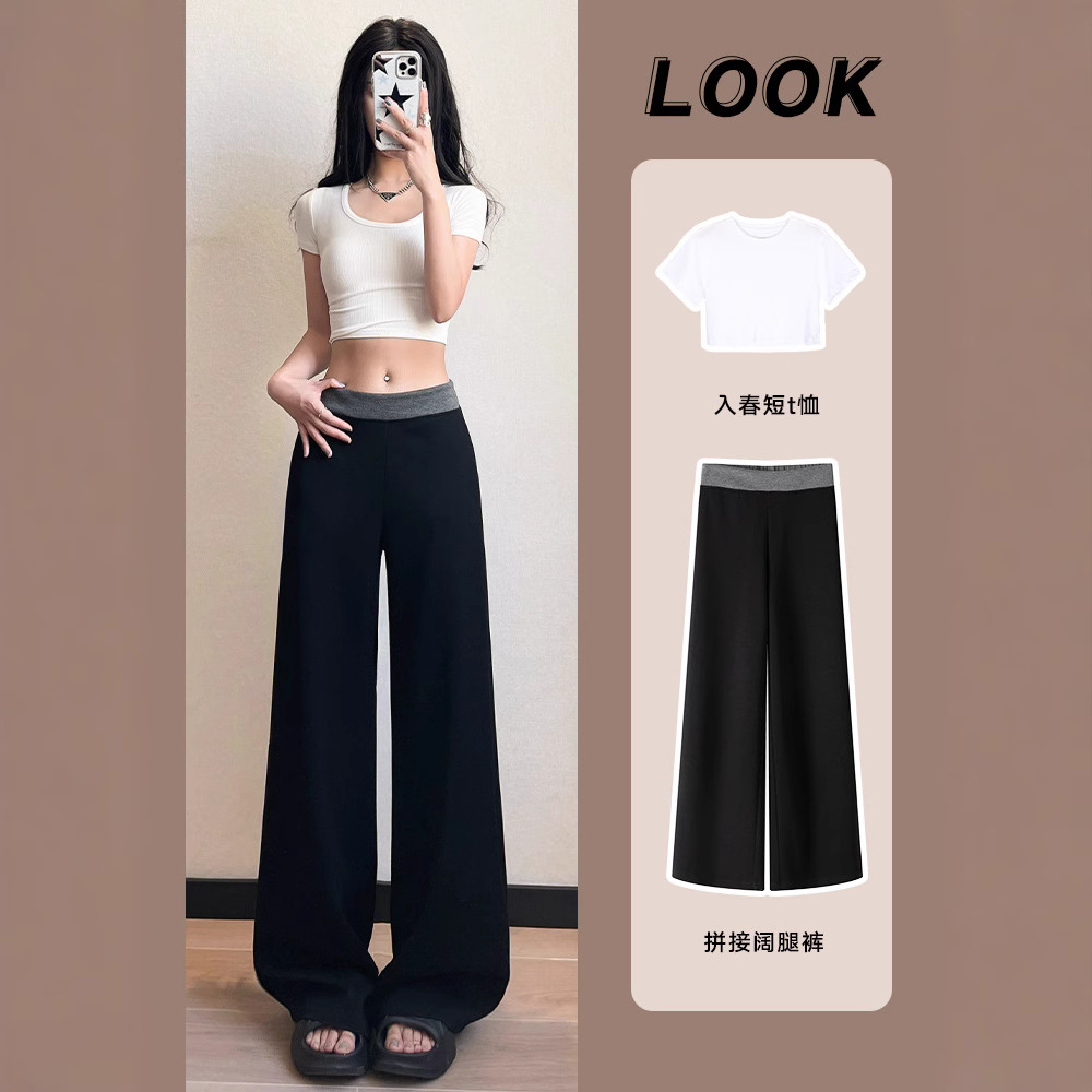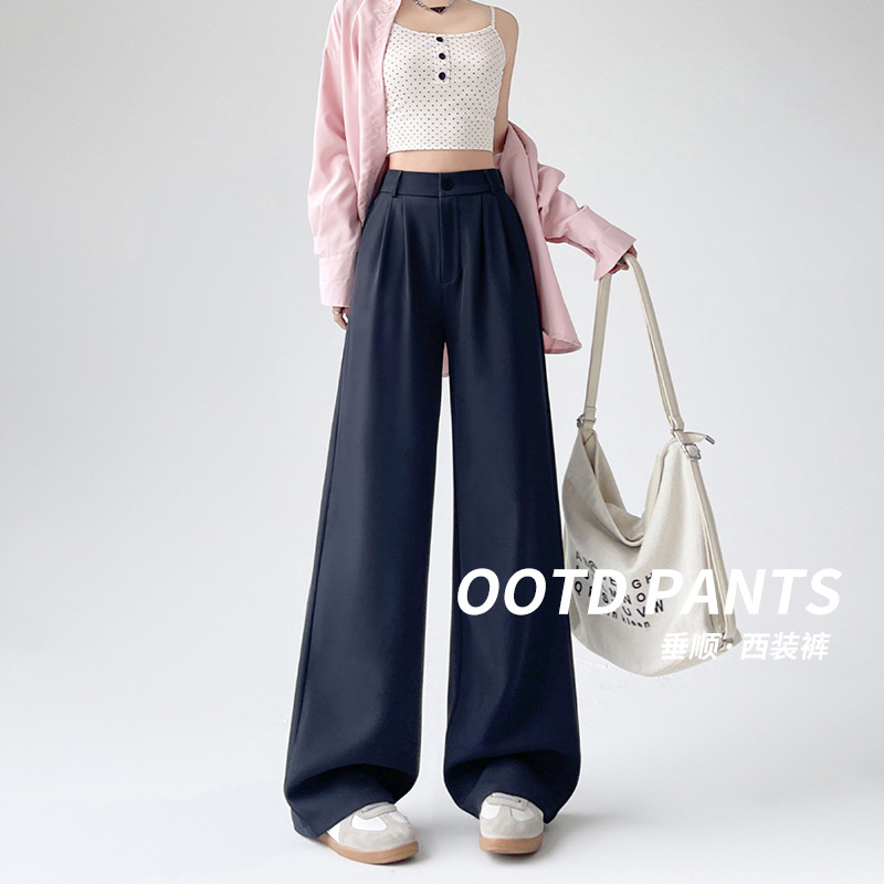 スーツのズボンの女性の春秋2025の新型の高い腰の垂れ下がった感の高級感の狭い版のまっすぐな筒のズボンの小さい背の広い足のズボン