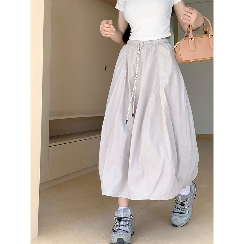 映画を超えて! !シンプルな巾着、万能で着痩せ効果のあるパンプキンスカート、ガーリーなミモレ丈スカート、夏のつぼみスカート