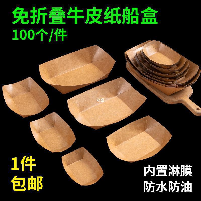 クラフト紙ボートボックス包装箱長方形使い捨て弁当箱フライドチキンステーキバーベキュースナックプレート商業紙プレート
