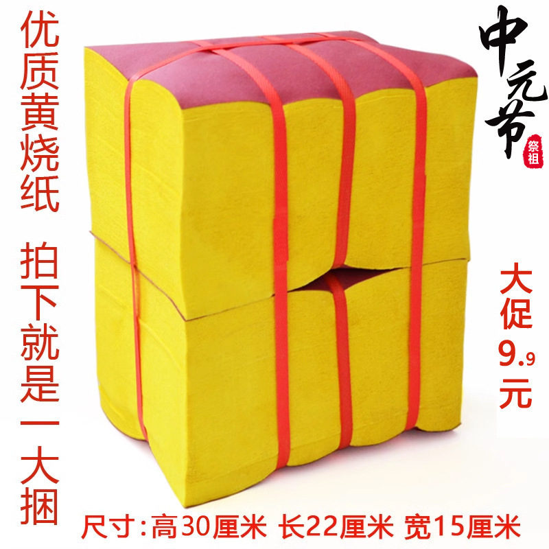 祭用品、黄色の紙の大きな束、火紙、紙幣、クレープ紙、元宝、57周年記念中元祭の墓火紙