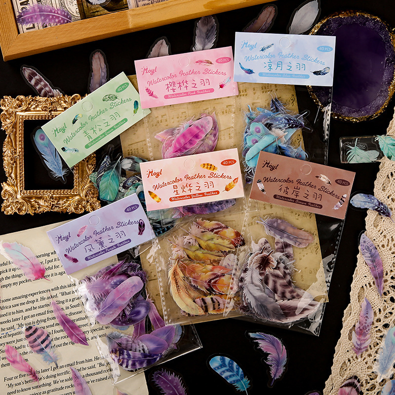 PET ステッカーパックフェザーシリーズ防水透明レトロハンドブック DIY コラージュ装飾素材ステッカーカスタマイズ可能