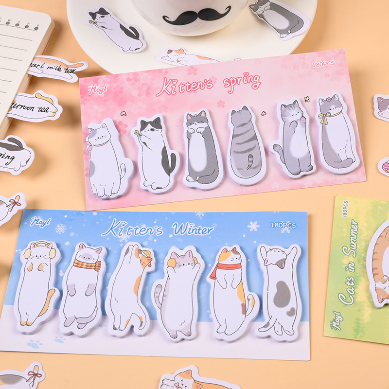 学生向けのかわいい猫の付箋、漫画の紙ラベル、ルーズリーフインデックスステッカー、ノートブックマーカーステッカー、小さなストリップ