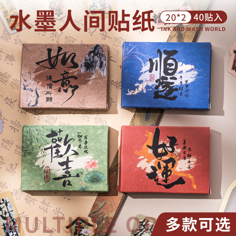 書道ノートステッカー箱入りステッカーインスピレーションテキスト中国古典古代スタイルノートステッカー装飾小パターン