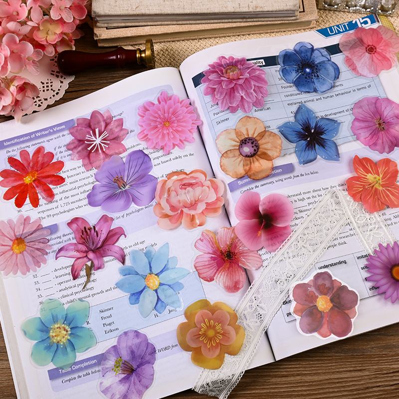 花カラフルなシリーズ PET 防水植物花花ステッカー装飾ハンドブック素材 diy コラージュステッカー