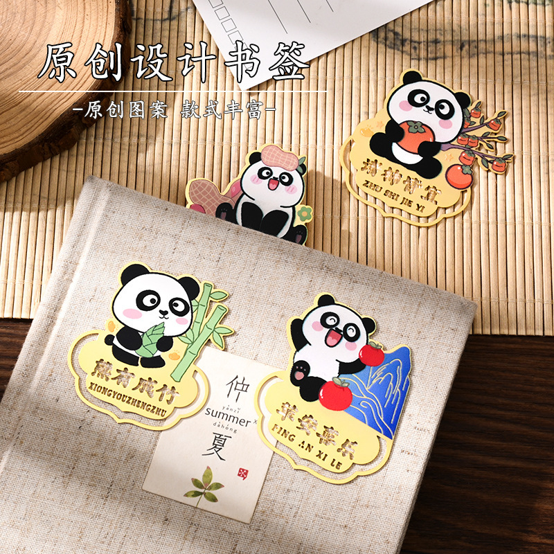 かわいい漫画のパンダの金属製ブックマーク、古典的な中国風の中空ブックページクリップ、ハイエンドの絶妙な文化的で創造的な小さなギフト