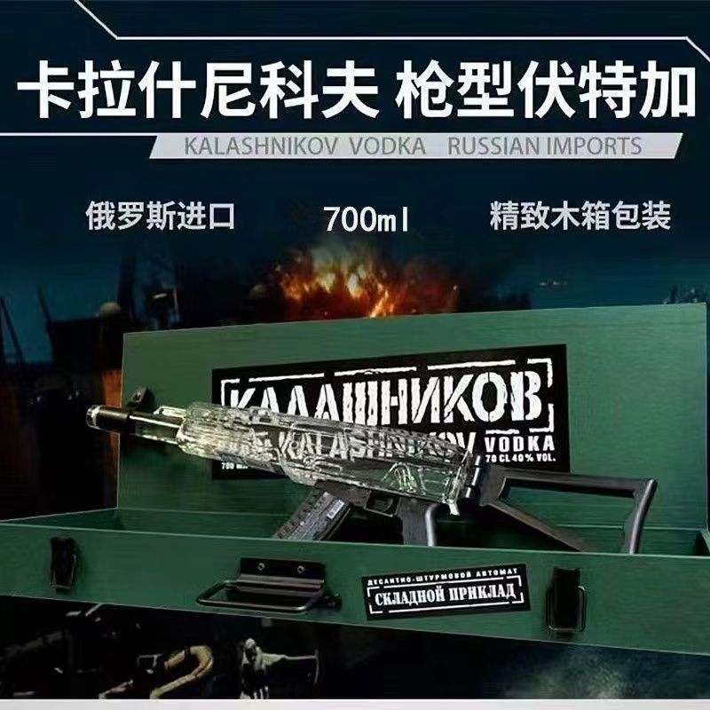 ロシア輸入ウォッカアートワインボトル AK47 銃型 40 度ギフト木箱入りウォッカ 700 ミリリットル